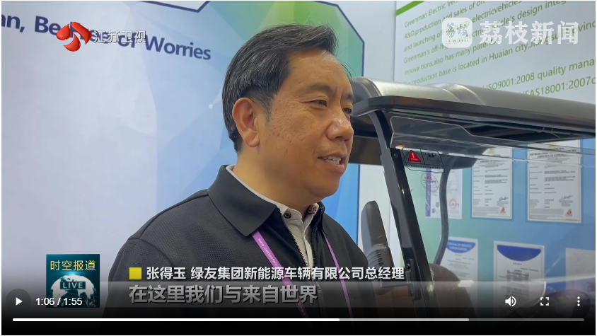 江蘇衛(wèi)視電視臺,采訪綠友集團新能源車輛有限公司總經(jīng)理張得玉先生,他講到:在這里我們與來自世界的100多個國家和地區(qū)的采購商,面對面交流,這種深度的互動溝通,讓我們迅速捕捉到國際市場的最新變化。